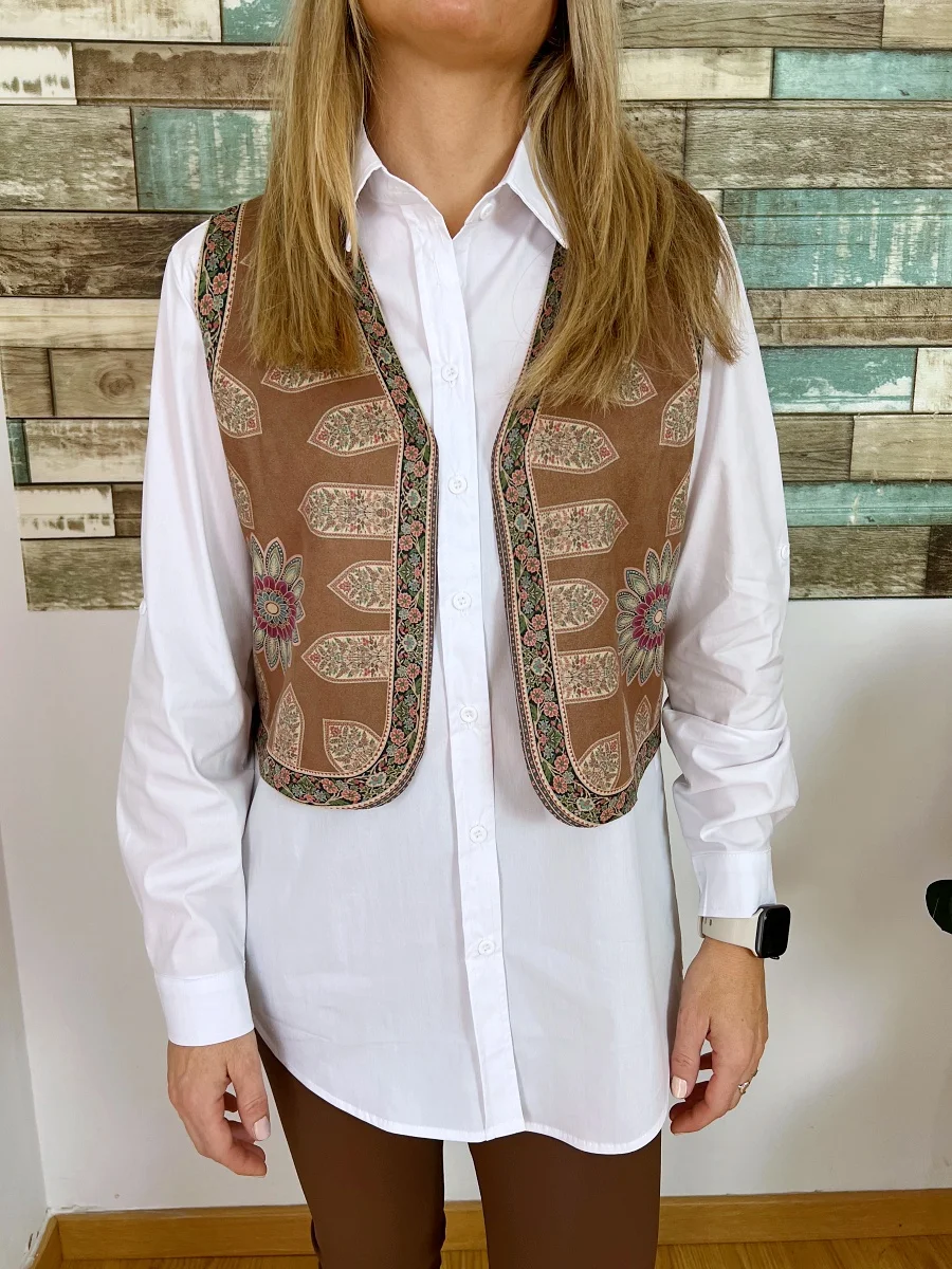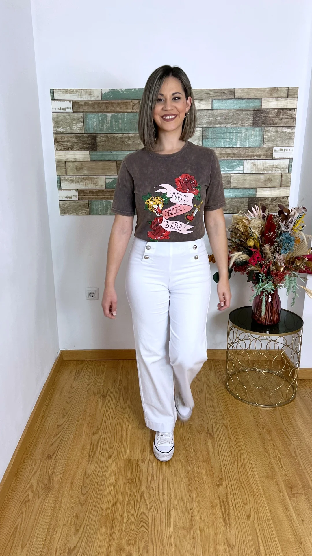 Es una camisa de manga corta con engomado en los laterales y cosido en relieve en la parte del pecho.
